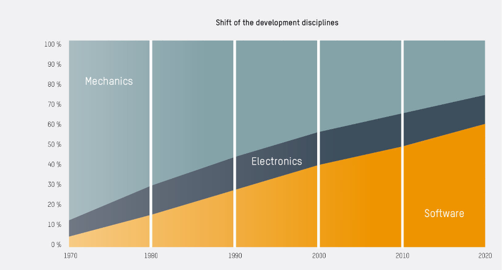 „V posledních desetiletích narostl podíl vývoje softwaru na celkovém vývoji nových strojů a zařízení z 5 na 50%“, vysvětluje Christoph Trappl, vedoucí Oddělení mezinárodních aplikací v B&R. A jeho podíl bude i nadále narůstat. Trappl vidí několik důvodů tohoto trendu. „Především je to tím, že výrobní procesy se stále zesložiťují a to nejen z důvodu rostoucí poptávky po výrobcích přizpůsobených individuálním požadavkům zákazníka“.