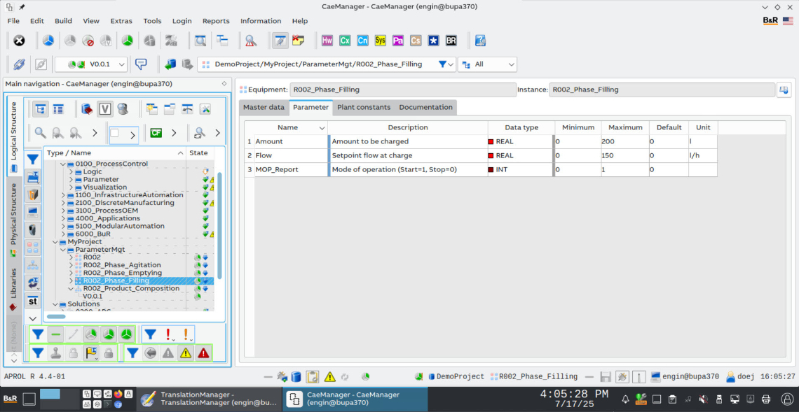 Access and editing of parameter data are securely controlled via the APROL user management system. This enables role-based teamwork, including the separation of engineering and operational functions.