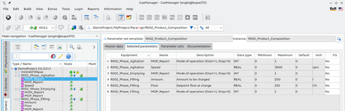 The desired equipment parameters for the respective system unit are selected in the parameter set template. This template is used to systematically define and manage all relevant parameters. Parameter set templates can be used to configure equipment objects in an efficient and standardized way.