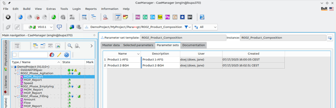 Parameter sets can be edited, created or deleted on a project-specific basis. It is possible to transfer parameter sets between different runtime systems.