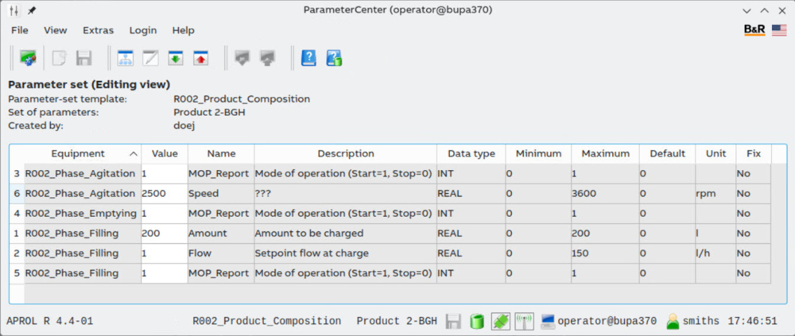 The parameter set is used to define a product or to form a self-contained parameter set that can be used independently of a specific product. It is created or edited by the user in the ParameterCenter and specifies all the settings and target values required for targeted configuration of a production process or system unit. After editing, the parameter set can be loaded directly onto the system. The parameter set enables efficient product changes and process adaptations and ensures transparency and traceability of the respective settings.