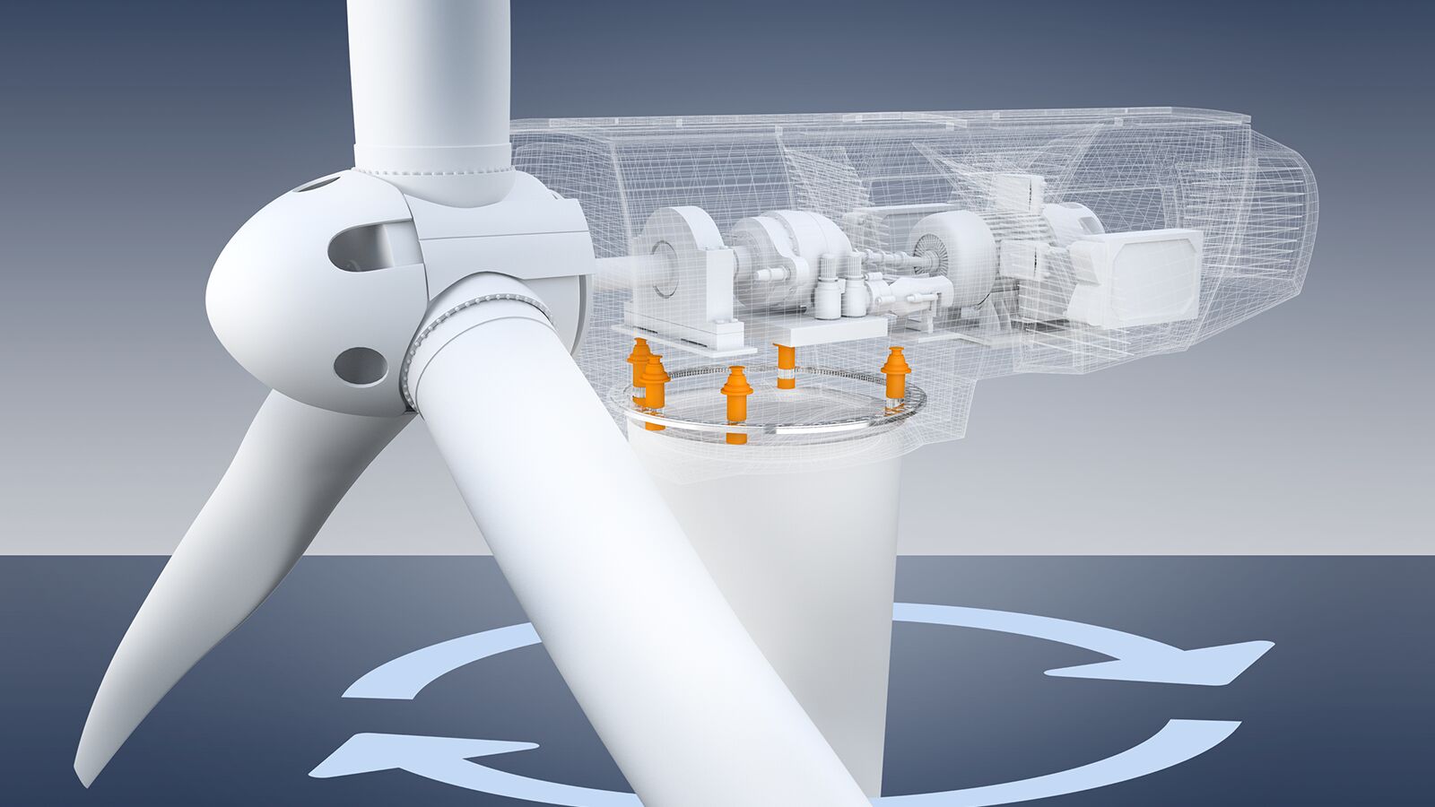 Wind power is the use of air flow through wind turbines in order to generate electricity. Onshore wind power makes a significant contribution to the world's electricity supply. In the case of offshore wind power, one of the goals is to significantly reduce the cost of maintenance. What both concepts have in common is the requirement to align the wind turbine in order to be able to use wind power optimally and efficiently, while at the same time reducing the resulting mechanical stress.
