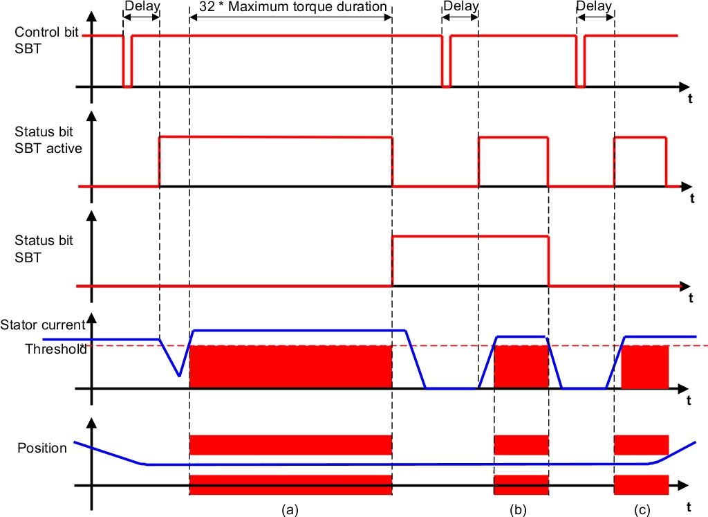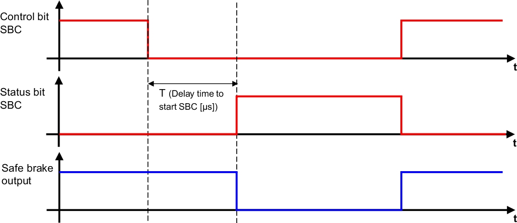 The SBT (Safe Brake Test) safety function allows an engaged brake to be tested by applying a configurable stator current for a certain period of time.
