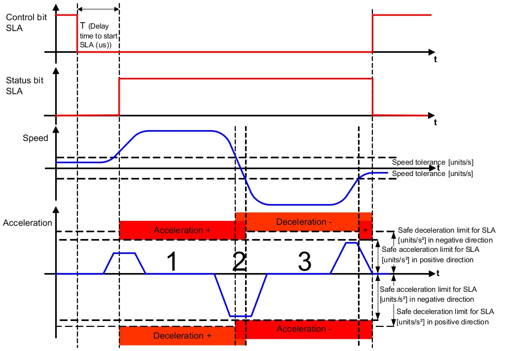 The SLA safety function is used to monitor the acceleration or deceleration with respect to defined maximum limits.