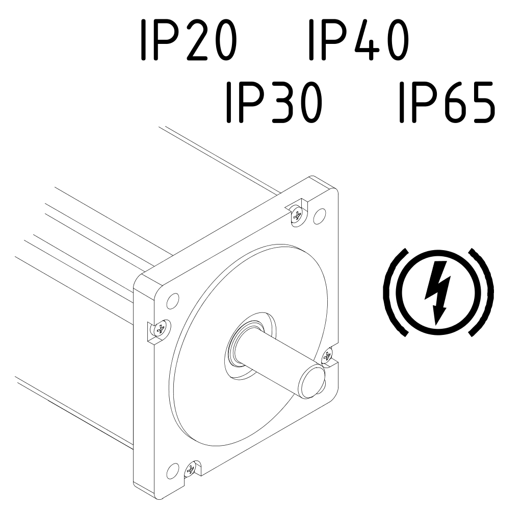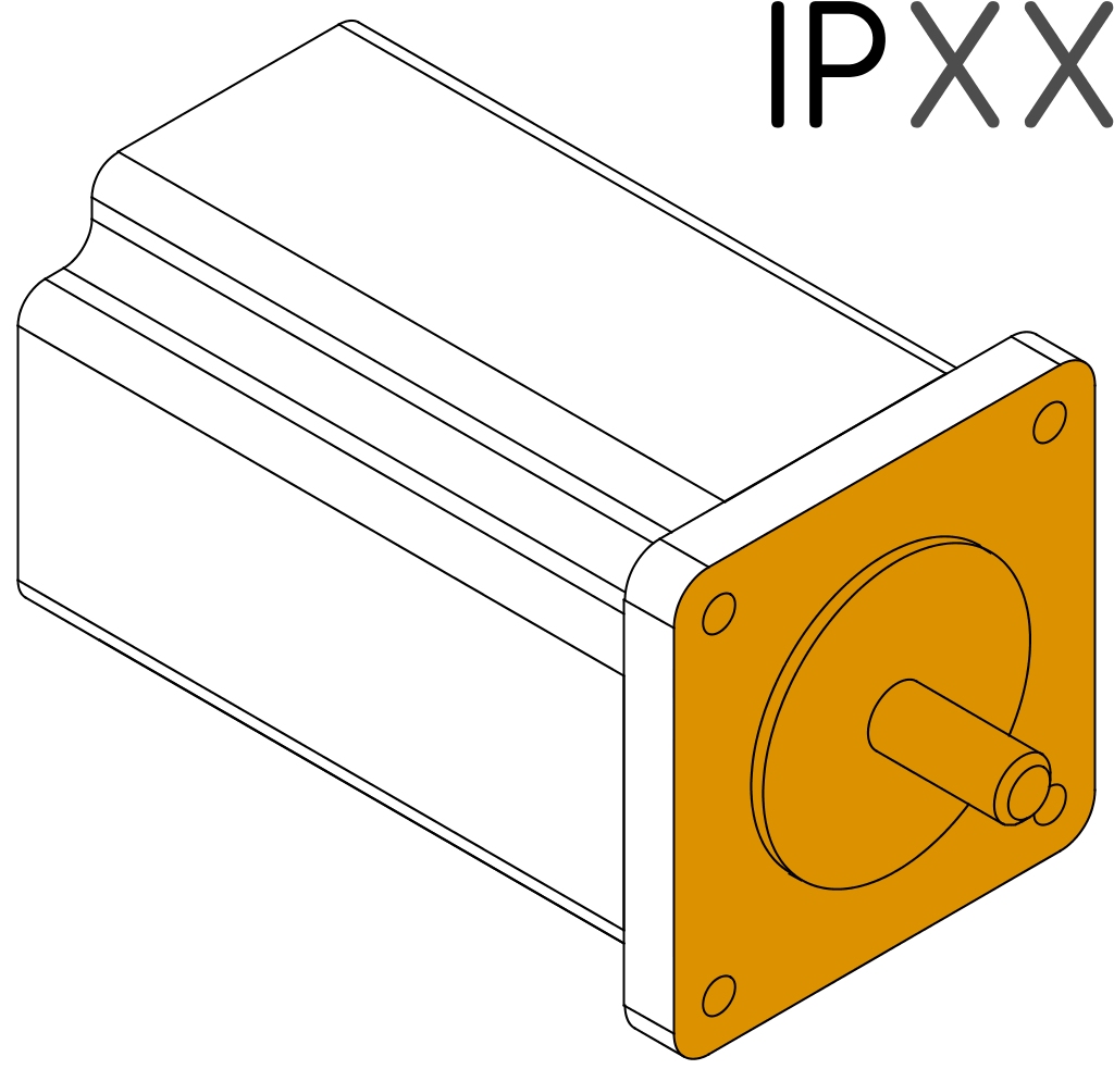 Motor ab Flansch ![]() | Flansch ![]() | Die Schutzart der Schrittmotoren ist aufgeteilt in zwei Bereiche. Es kann daher vorkommen, dass Motoren am Flansch (Stirnseite Anschraubflansch und Motorwelle) eine niedrigere Schutzart aufweisen. |