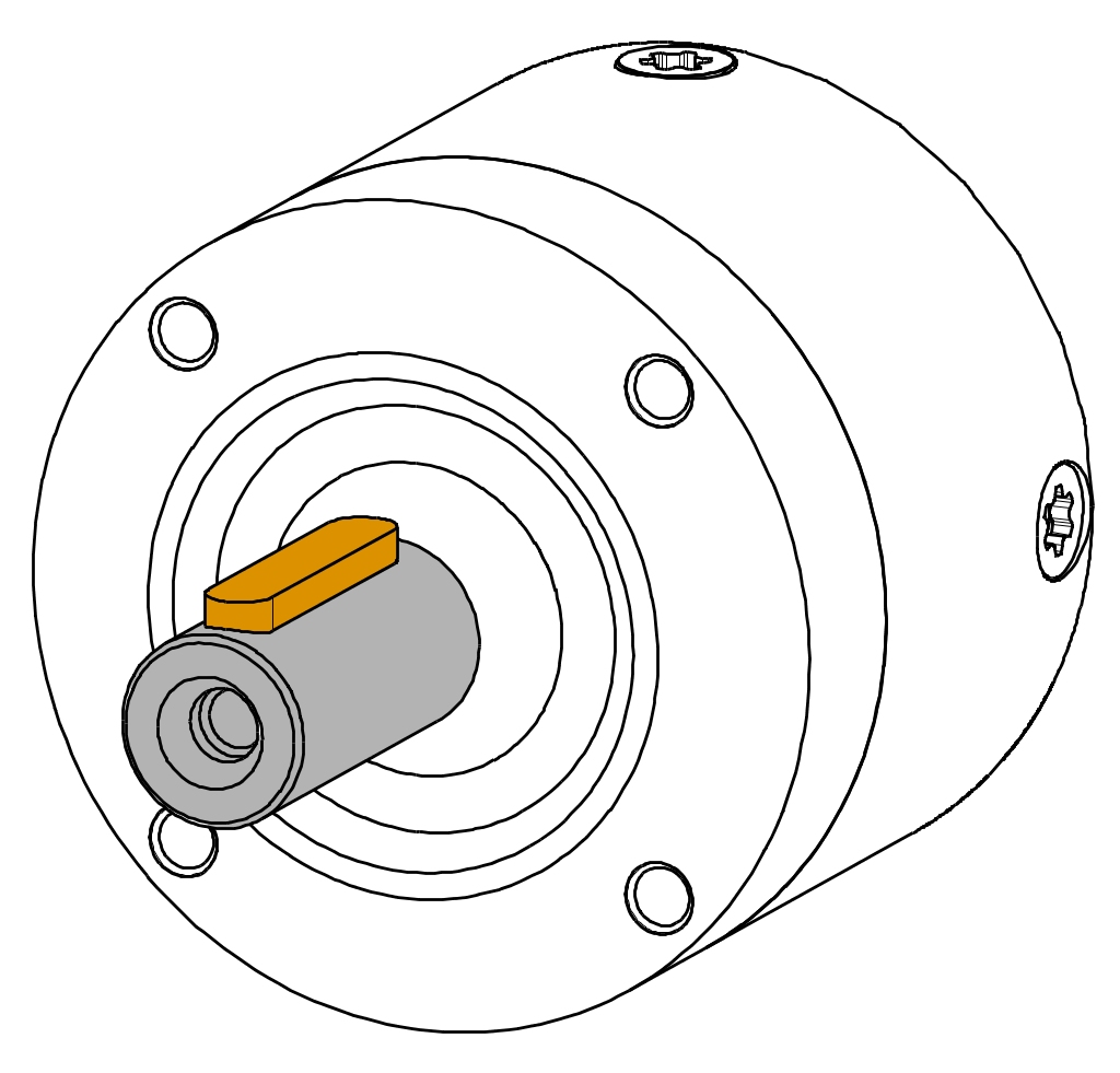 | Wellenende mit PassfederDas Wellenende mit Passfeder kann für eine formschlüssige Drehmomentübertragung bei geringen Anforderungen an die Welle-Nabe-Verbindung und für die Aufnahme richtungskonstanter Drehmomente verwendet werden. Die Passfedernuten der Antriebseinheiten der 8LVB Reihe entsprechen der Nutform N1 nach DIN 6885 T1. Zur Fixierung von Antriebselementen mit Wellenendscheiben ist an der Stirnseite der Welle eine Zentrierbohrung mit Gewinde vorgesehen. | ![]() |