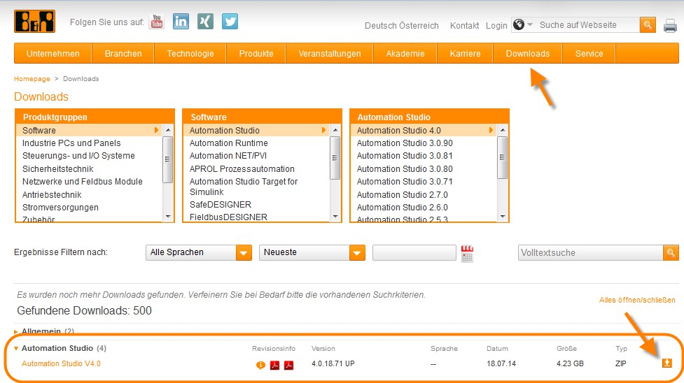 - Navigieren Sie im Downloadbereich in den Abschnitt Software / Automation Studio / Automation Studio V4.12.