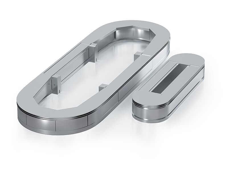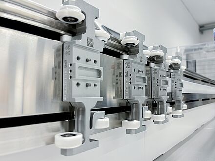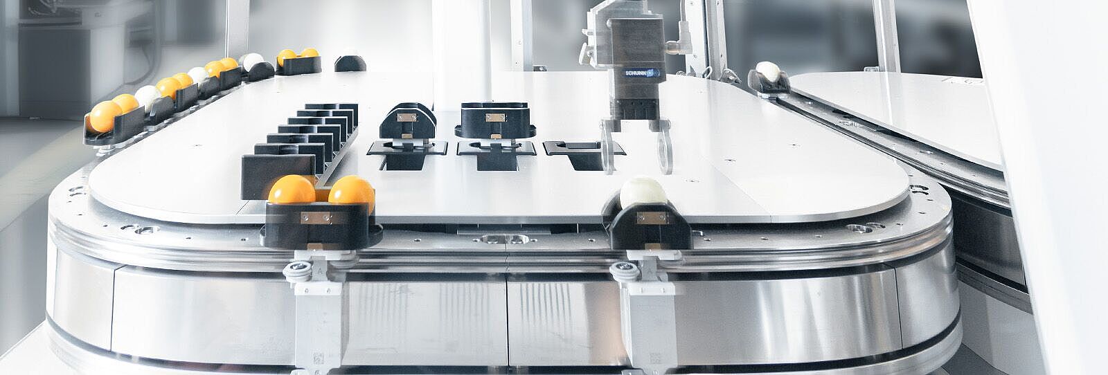 Die Shuttles ermöglichen einen reibungsarmen Transport und präzise Produktpositionierung, wahlweise mit und ohne Weichenfunktion. Einzelne Shuttles haften durch Permanent-Magnet-Haltung am Track und lassen sich einfach und schnell aufsetzen und abnehmen: Der Bediener setzt die Räder auf die Führung auf; das Shuttle wird sogleich von der Magnetkraft gehalten. Mithilfe von Trackabschnitten für Umrüstung und Service ist der Wechsel noch effizienter – vollständig ohne Maschinenstillstände, im laufenden Betrieb – möglich.