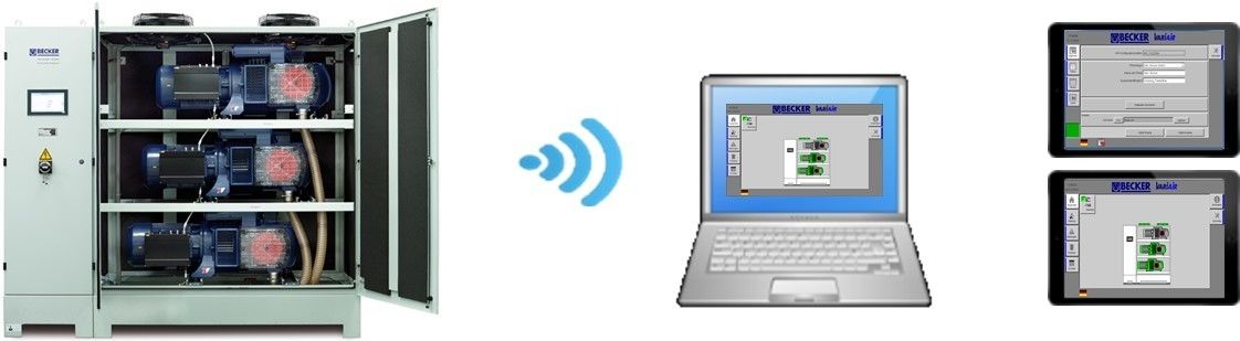 Bei Becker ist dieses Problem bekannt und so arbeiten über 800 Mitarbeiter weltweit an kundenorientierten Lösungen für energieeffiziente Verdichter und Luftversorgungssysteme. Dazu gehören in erster Linie strömungstechnisch optimierte Vakuumpumpen als Verdränger- oder Strömungsmaschinen. „Unsere Kompetenz zeigt sich nicht nur bei innovativen Geräten und Systemen. Viel wichtiger ist die exakte Auslegung auf die Bedürfnisse des Kunden“, sagt Stefan Beierlein, Leiter Produktmanagement und Marketing bei Becker. „Nur, wenn die Systeme zu jeder Zeit exakt im sich ständig verändernden Arbeitspunkt betrieben werden, arbeiten sie auch energieeffizient.“ Das lässt sich noch steigern, wenn die Luftversorgung zentralisiert und koordiniert gesteuert werden kann.