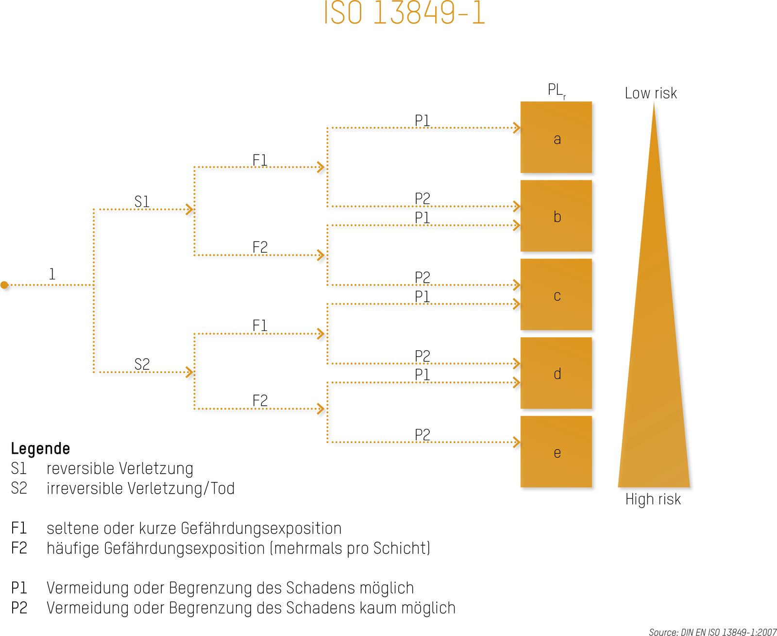Doch woher weiß der Hersteller einer mobilen Arbeitsmaschine, welche Anforderungen eine Sicherheitslösung erfüllen muss? Zuerst muss er prüfen, ob seine Anwendung unter die Bestimmungen der europäischen Maschinenrichtlinie fällt – die mittlerweile für nahezu jede mobile Arbeitsmaschine gilt. „Die Maschinenrichtlinie verpflichtet den Hersteller, anhand eines Risikographen eine Gefahrenanalyse und Risikobewertung durchzuführen, um das notwendige Level für die Sicherheitsfunktion zu bestimmen“, erklärt Taxer. Nach Taxers Erfahrung muss bei mobilen Arbeitsmaschinen in den meisten Fällen der Safety Integrity Level SIL2 beziehungsweise der Performance Level PLc erreicht werden.
