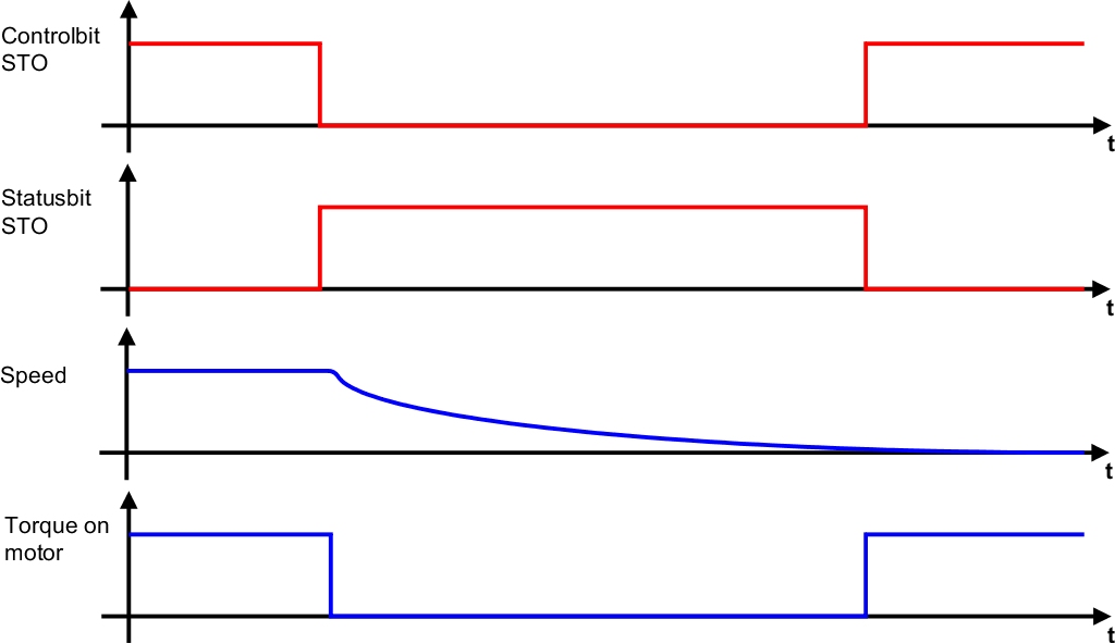 Die Sicherheitsfunktion STO stellt die Grundlage aller anderen Sicherheitsfunktionen dar. Sie ist die Implementierung des Ruhestromprinzips und wird immer im Fehlerfall eingenommen.
