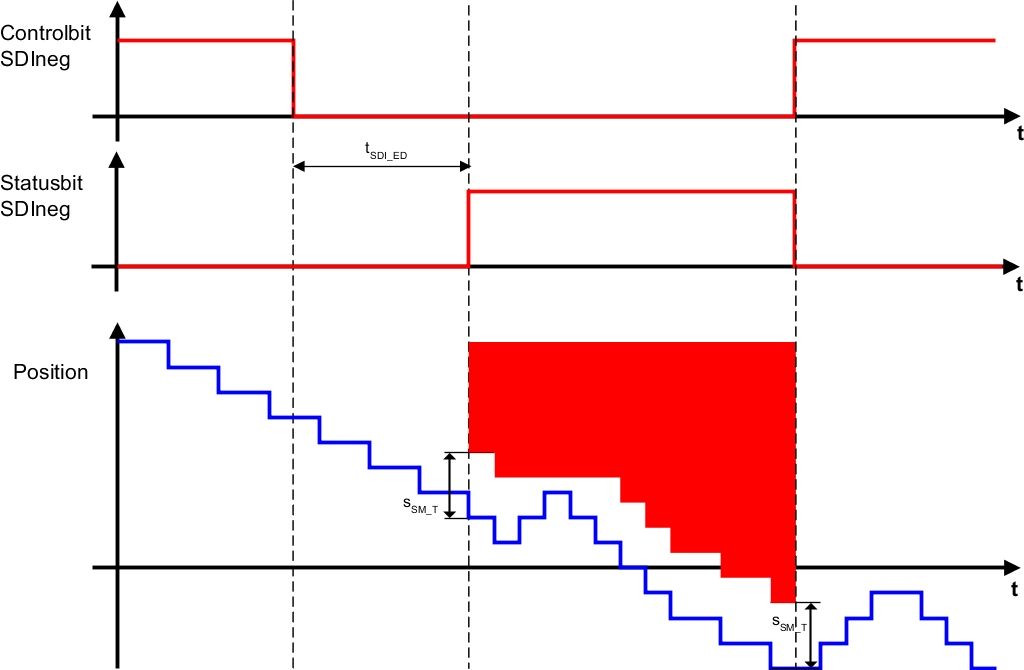 Die Sicherheitsfunktion SDI überwacht die Einhaltung einer definierten Bewegungsrichtung. Bei einer Verletzung wird die sichere Impulssperre aktiviert und ein quittierbarer Fehlerzustand eingenommen. Es kann sowohl die positive als auch negative Richtung überwacht werden.