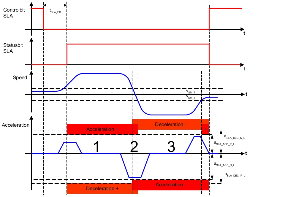 Die Sicherheitsfunktion SLA dient dazu, die Beschleunigung bzw. Verzögerung auf Einhaltung vorgegebener maximaler Grenzen zu überwachen.