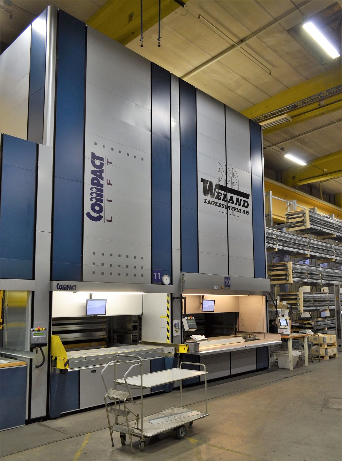 Im südschwedischen Gislaved baut Weland vertikale Lagerlifte, mit denen Kunden auf der ganzen Welt ihre Lagerbestände effizienter verwalten können. Das neue Compact-Twin-Modell erhöht mit dualen Lasttabletts die Pickleistung auf mehr als das Doppelte und bewältigt somit bis zu 1.200 Kommissionierlisten pro Stunde.