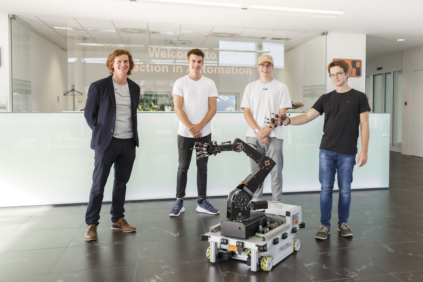 Im Rahmen ihres Maturaprojekts haben vier Schüler der HTBLuVA Salzburg einen Robotergreifarm entwickelt, der mit einem 3D-gedruckten Handschuh gelenkt wird. Unterstützt wurden die Schüler von B&R.