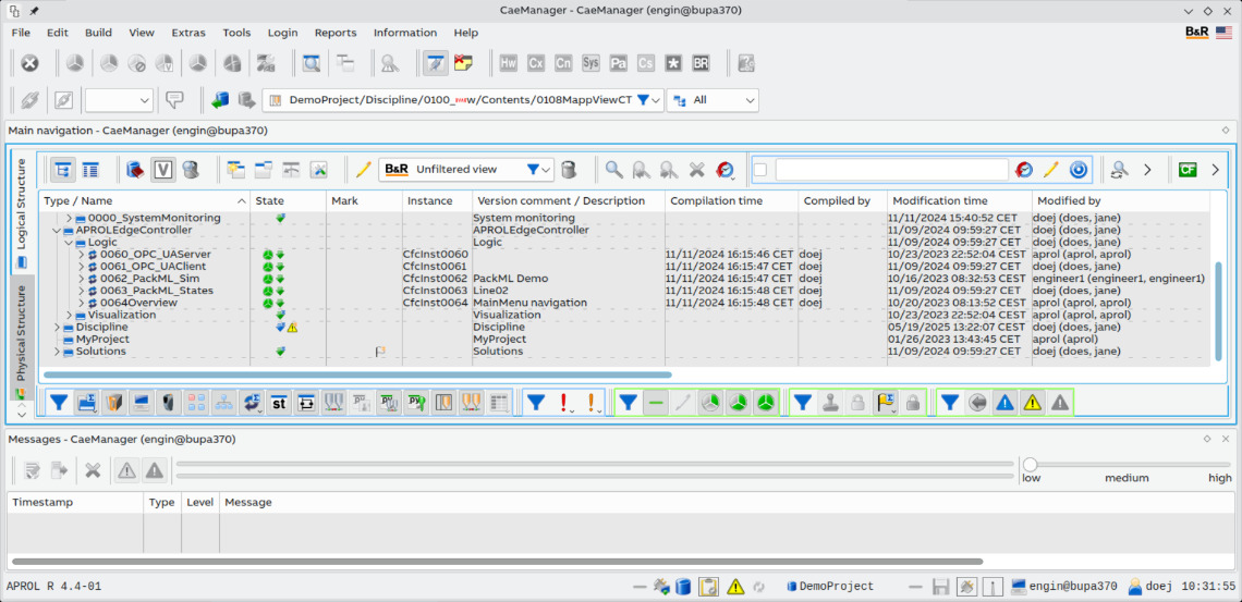 The project structure can be freely selected or created according to S88, AKS, KKS or other standards. An explorer-like tree view provides a clear overview. Various views – such as the project view, private processing status or typified views – support individual working methods of the engineers.