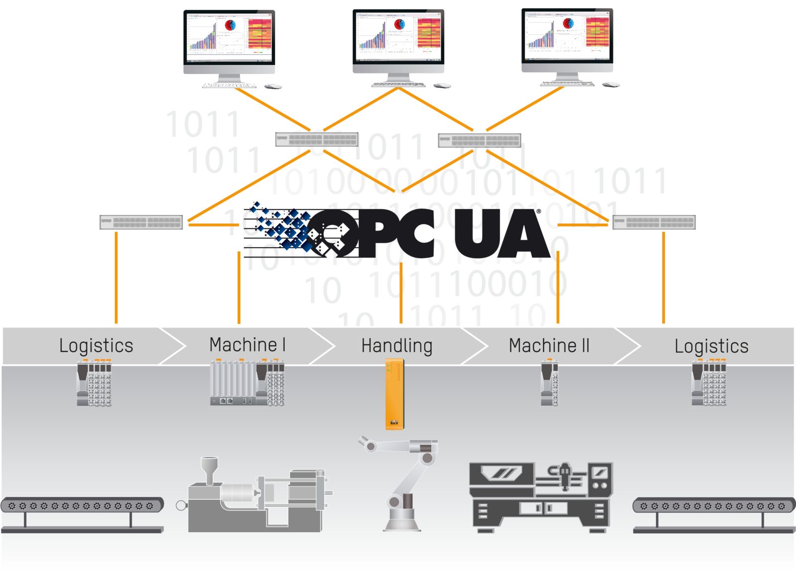 Even within these modular production units, the increasingly complex tasks being performed require a greater number and variety of high-tech components. Despite being built by different manufacturers, these components must talk to each other to get the data they need.