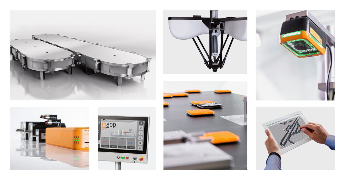 Los sistemas de transporte de productos planares y basados en pistas permiten un control continuo del movimiento de cada producto a través de un proceso de fabricación dinámico. Varias lanzaderas se sincronizan con un espacio variable para transportar productos de cualquier forma. Los desviadores electromagnéticos dividen y fusionan el flujo de producción a toda velocidad. Los segmentos modulares permiten unas posibilidades ilimitadas de diseño y una sencilla ampliación y reconfiguración.
