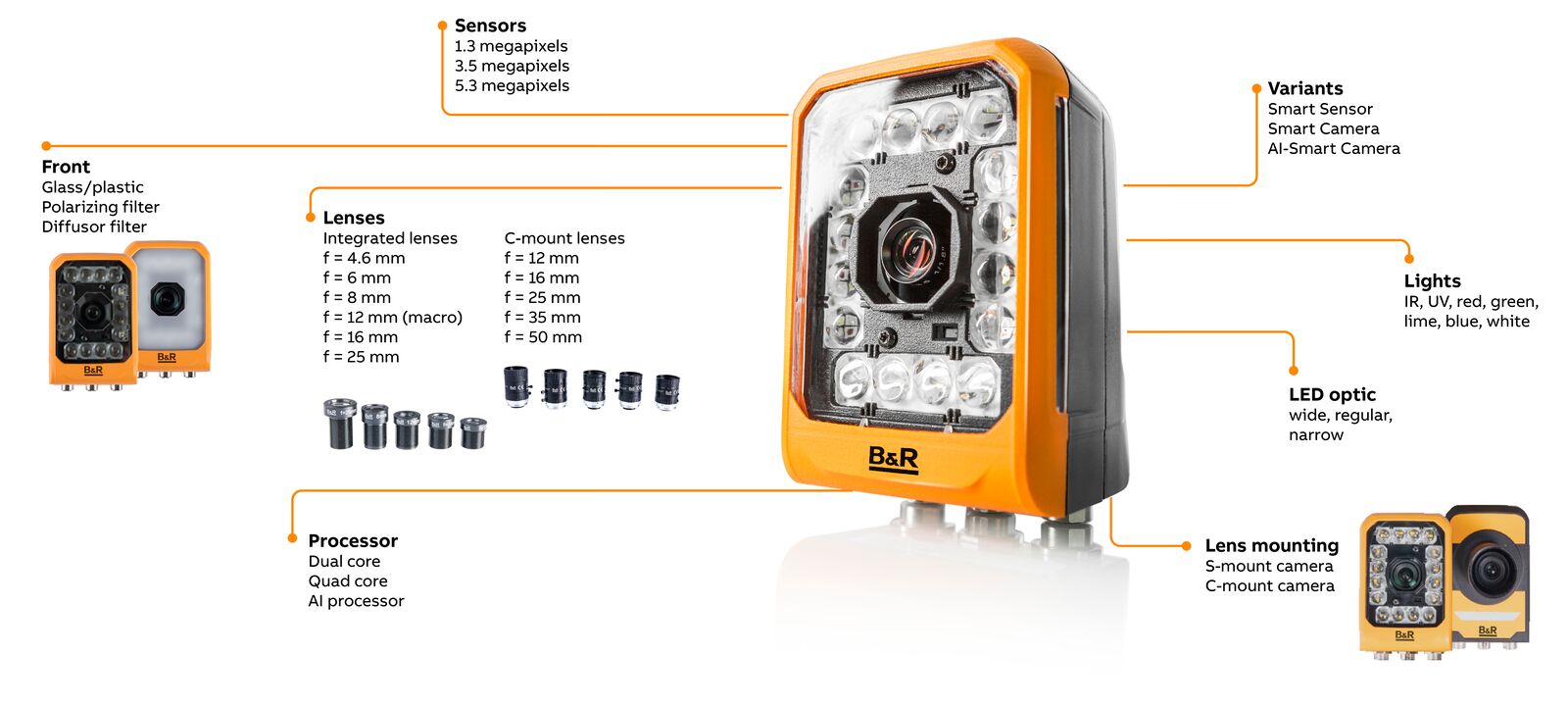 Todas las funciones pueden combinarse individualmente. Ello permite configurar el sistema adecuado para cualquier aplicación. Obtenga una visión general de las posibilidades disponibles con el sistema de visión adaptativa de B&R.