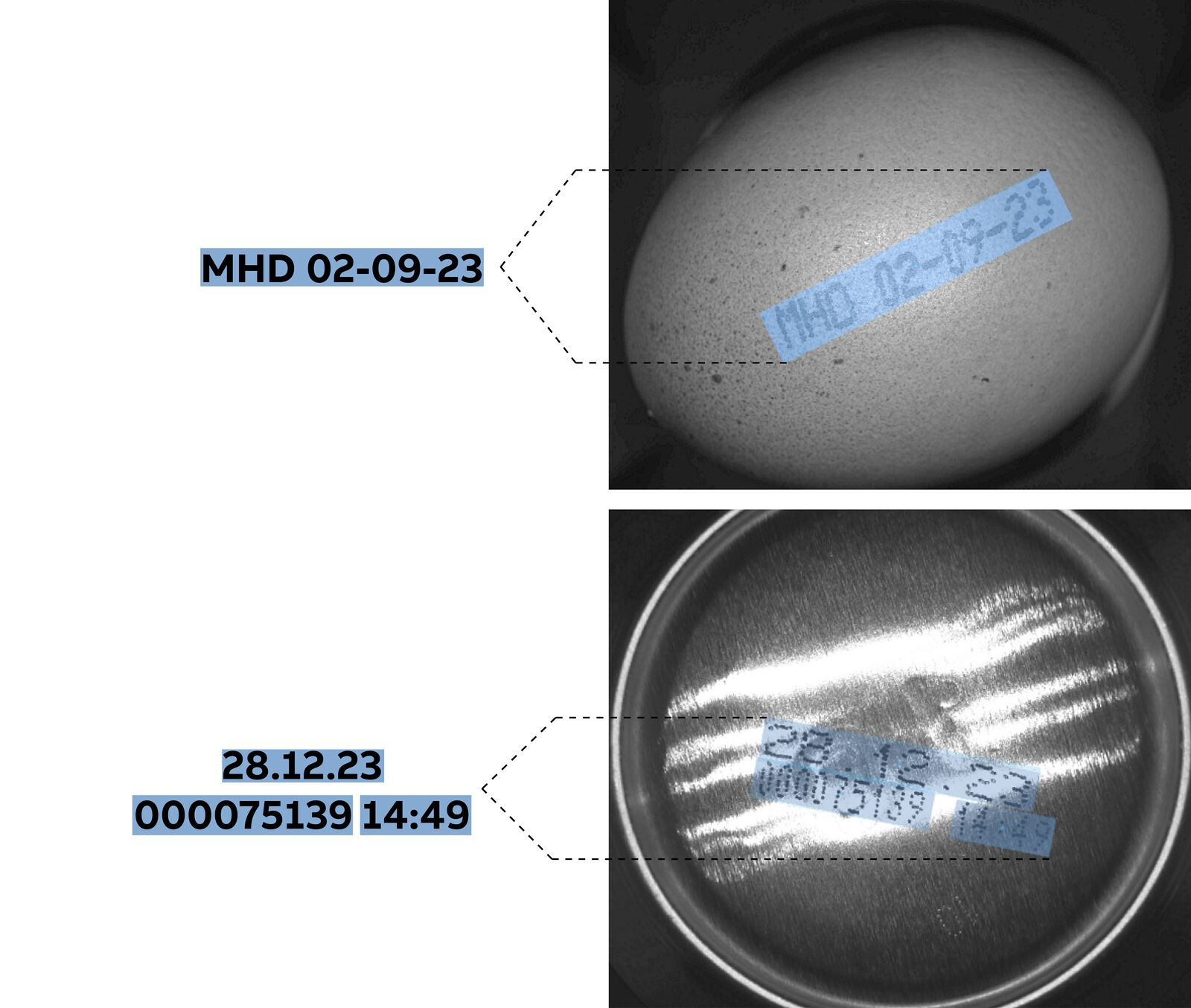 La función integrada de reconocimiento de caracteres tiene una excepcional capacidad para reconocer caracteres al instante. No es necesaria ninguna formación ni parametrización para permitir una lectura de alta velocidad incluso con imágenes de baja calidad o con caracteres difíciles, como las fuentes de las impresoras matriciales. Un algoritmo de deep learning hace que la función sea aún más fiable y abre nuevas y apasionantes formas de mejorar la calidad, aumentar la productividad y evitar los rechazos, al mismo tiempo que consiguen flexibilizar la fabricación. Todas las funciones de cámara inteligente disponibles pueden combinarse con OCR profundo.