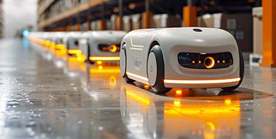 B&R permite la perfecta integración de vehículos AGV y AMR en sistemas informáticos y control de nivel superior para permitir que varios vehículos se comuniquen y se coordinen entre ellos de manera eficiente. Ello también incluye la conexión en red con otras máquinas y dispositivos en el entorno de producción. Las soluciones de automatización flexibles y escalables se adaptan a las necesidades cambiantes de las flotas de vehículos AGV y AMR. Esto también incluye la integración de inteligencia artificial (IA) y aprendizaje automático (ML) para mejorar continuamente tanto el rendimiento como la eficiencia de los vehículos.
