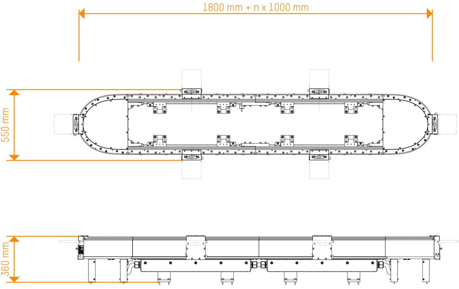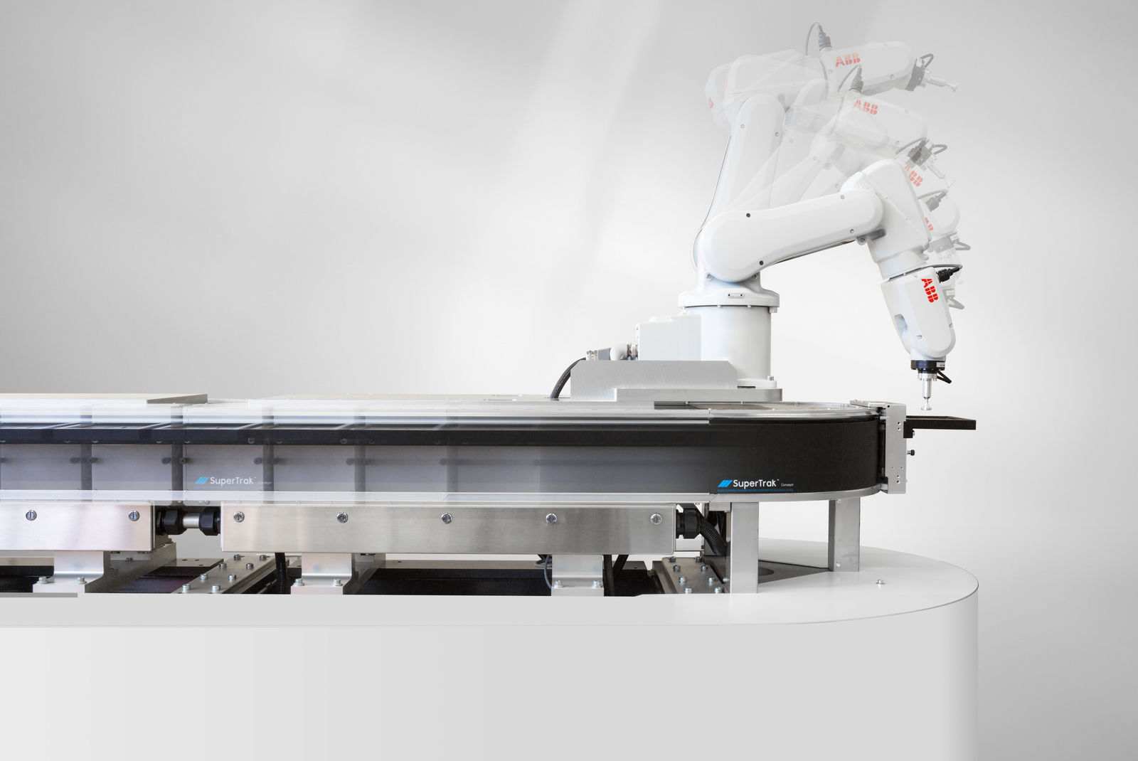 SuperTrak utiliza la tecnología de imanes para guiar las lanzaderas controlables individualmente a lo largo de una pista utilizando motores lineales de largo estator.