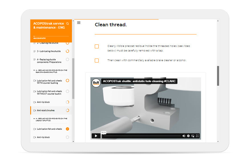 Click to see an overview of the instruction videos available for installation and maintenance of the ACOPOStrak system.