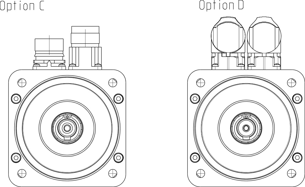 Le code (ff) pour les autres options (joint à huile, frein de maintien, arbre claveté et direction de connexion) est C3.
