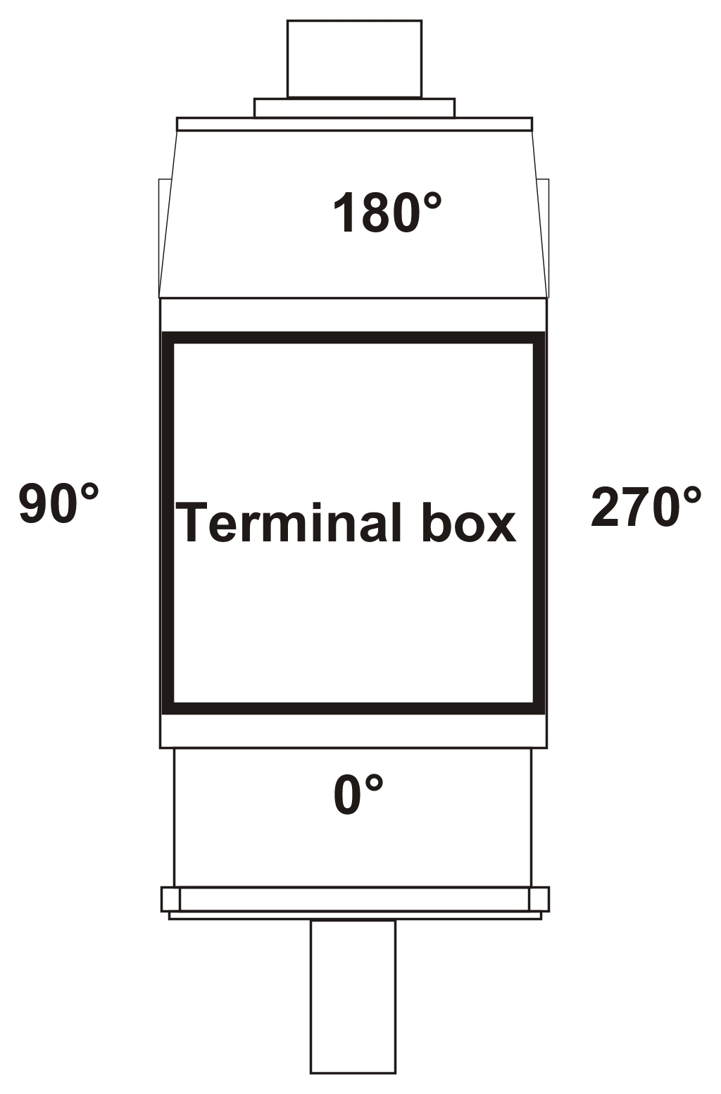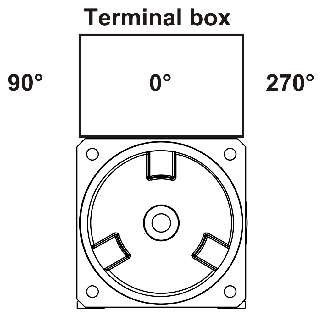 Le raccordement de l’alimentation des moteurs synchrones triphasés 8KS se fait généralement par bornier. Le bornier est situé sur le dessus du moteur et le connecteur est droit (ce qui correspond à 270°).