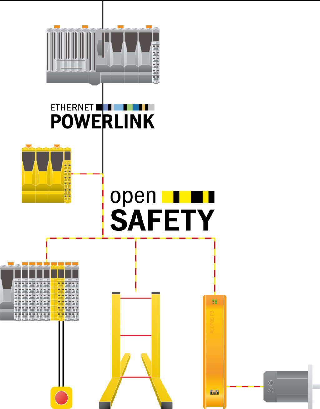 As with safe drives and I/O, the openSAFETY light curtain is integrated directly into the safety network. Wiring is reduced to a minimum.