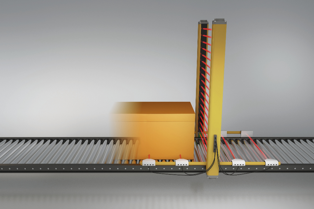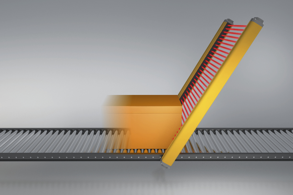 Light curtain with single-beam evaluation, as they are defined in the new EPSG profile, provide an easier way. "When this type of light curtain is mounted at an angle, we are able to obtain all the data we need for intelligent muting," says Veselic. Based on which light beam is interrupted first, it is possible to determine the direction traveled by the product – without any additional hardware.