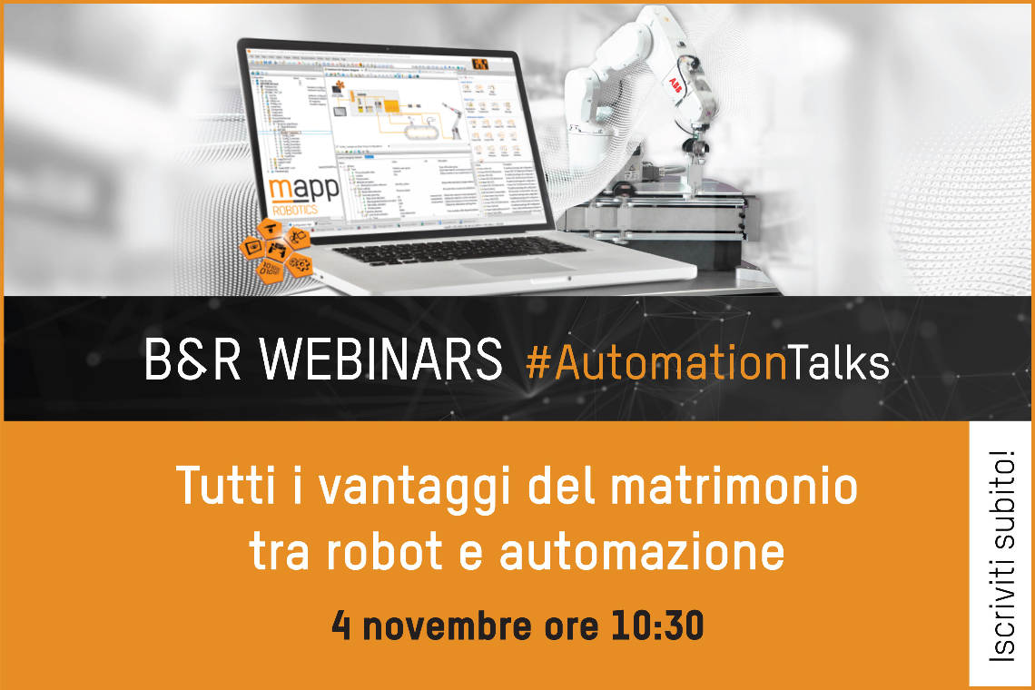 Ė in programma il prossimo 4 novembre il nuovo webinar del ciclo Automation Talks di B&R dal titolo ‘Tutti i vantaggi del matrimonio tra robot e automazione’.
