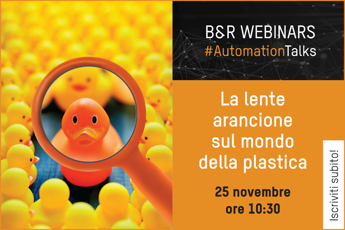 Il prossimo 25 novembre si terrà l’ultimo webinar dell’anno del ciclo Automation Talks di B&R dal titolo ‘La lente arancione sul mondo della plastica’.