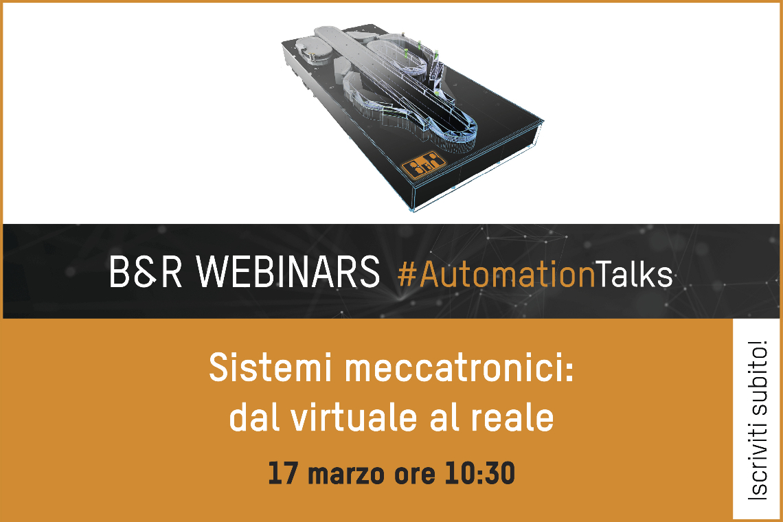 Si terrà il prossimo 17 marzo il nuovo webinar del ciclo Automation Talks di B&R dal titolo ‘Sistemi meccatronici: dal virtuale al reale’.