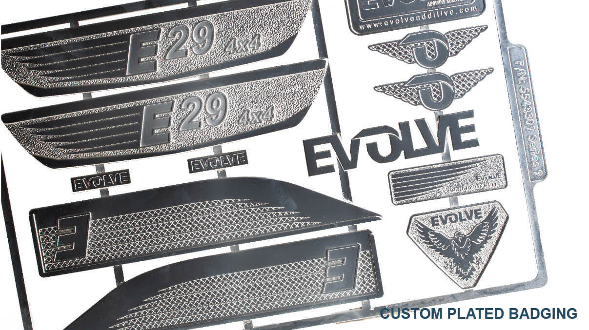 Automakers use badges to identify variations of a given model – like the "Texas Edition" of a line of pickups. To produce the thousands of badges needed each year, the automaker would need to have dozens of 3D printers running 24/7. Evolve now offers just the right mix of volume and flexibility to scale production at optimal cost.