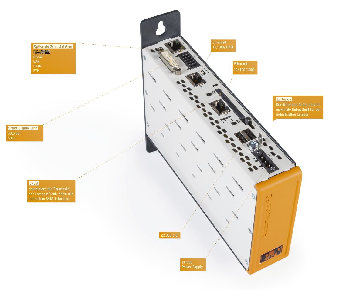The control cabinet variant of the Automation PC 2200 combines a fully-fledged PC system and minimum size with the performance of the latest Intel Atom E3900 processors.