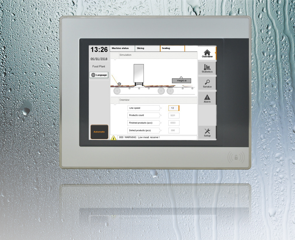 Thanks to the RFID read/write unit integrated in the Panel PC, access rights can be controlled completely without contact yet with absolute security. Passwords or key switches are not necessary.