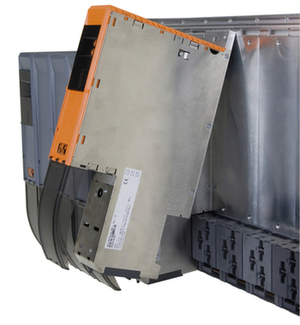 The motor and encoder lines are connected in the easiest way imaginable using plugs and pre-assembled cables. The network connection is also made the same way. For large power ratings (i.e. 64kW and up), threaded bolts and sufficient free space make it much easier to connect to the power supply module and inverter module.