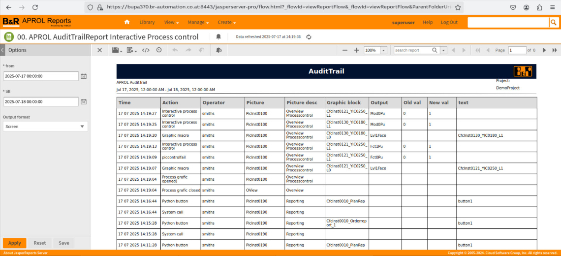 All operator activities in the APROL system are logged continuously and tamper-proof in an audit trail database. This historical data fulfills essential requirements of industry-specific regulations such as 21 CFR Part 11, EU 178/2002 and GAMP guidelines for the pharmaceutical, food and beverage industries.