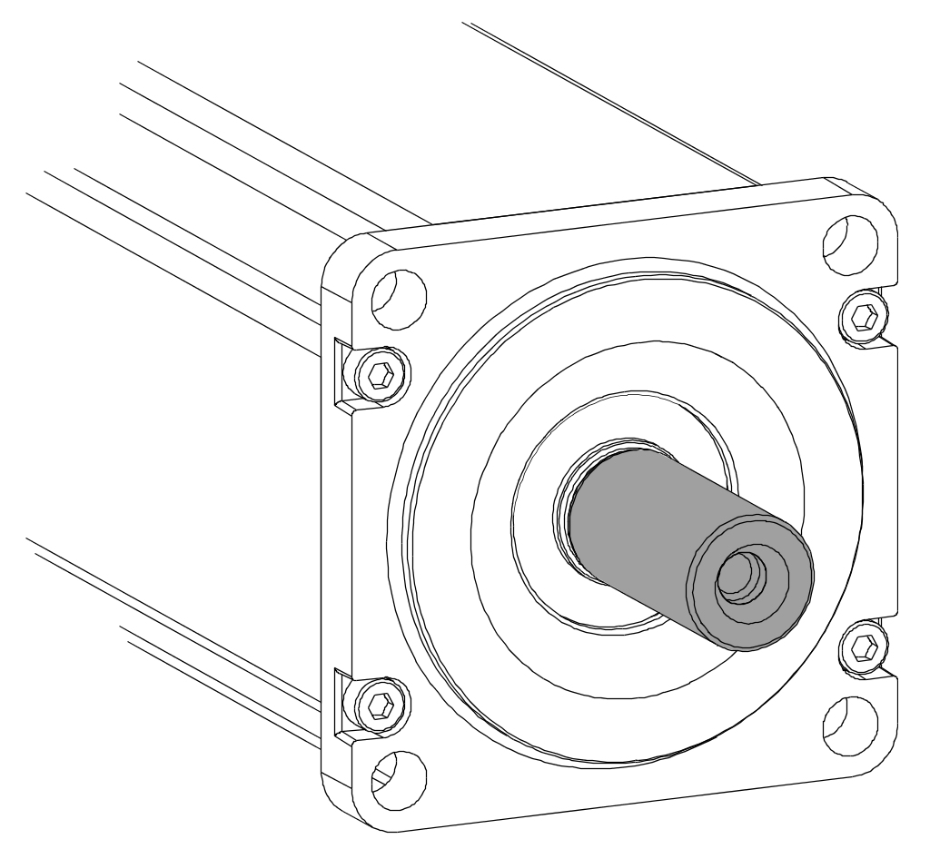 ![]() | Keyed shaft end A keyed shaft end is used for a form-fit torque transfer with low demands on the shaft-hub connection and for handling torque in a constant direction. The keyways conform to keyway form N1 per DIN 6885-1. Form A keyed shafts that conform to DIN 6885-1 are used. Balancing motors with keyways is done using the shaft and fitment key convention per DIN ISO 8821. The end of the shaft has a threaded center hole that can be used to install machine actuators with shaft end cover plates. |