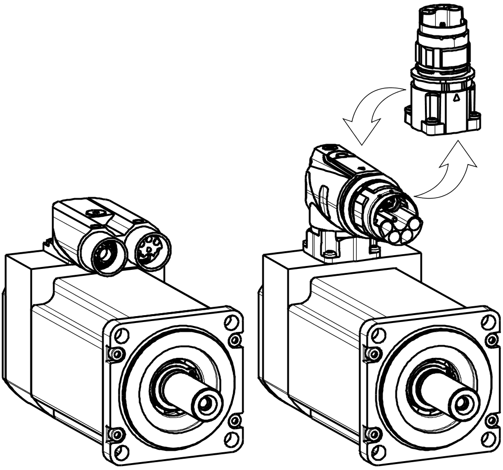 ![]() | Built-in double angular connector Connection direction: Angled (swivel1)) Encoder and power cable: Separated with their own connections ![]() |