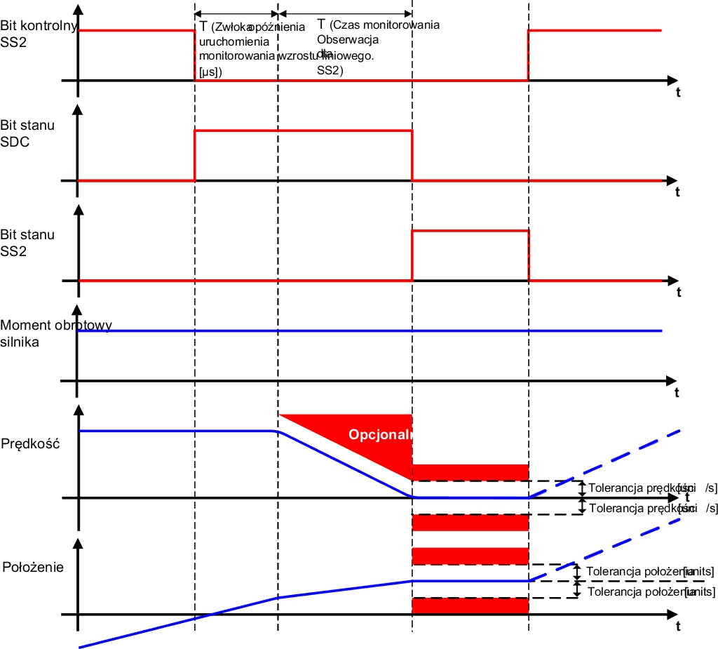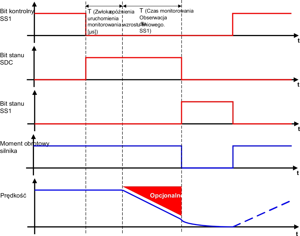Safe Stop 1 (SS1) | Monitorowanie na podstawie czasu: | Monitorowanie na podstawie czasu: | Monitorowanie na podstawie czasu: | Monitorowanie na podstawie czasu: | Monitorowanie na podstawie czasu: |