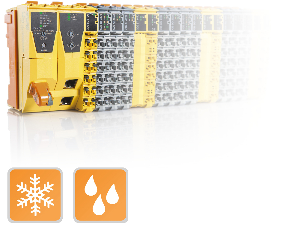 Além dos produtos com proteção IP20, também está disponível uma versão revestida do sistema que pode suportar até 100% de umidade e gases corrosivos, assim como o sistema X67 para aplicações que requerem proteção IP67.