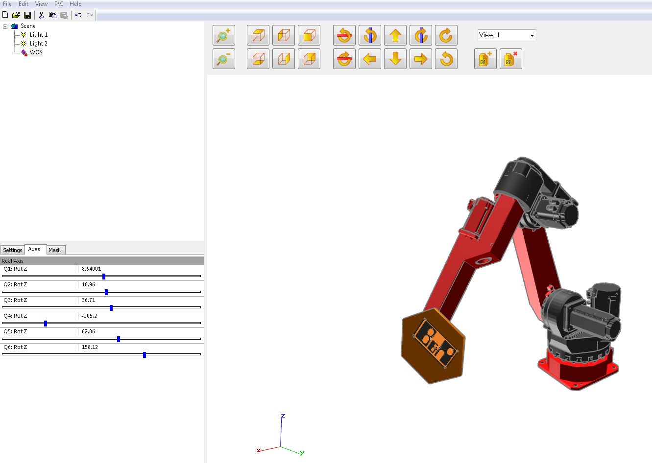 To create new kinematic systems, the B&R Scene Viewer tool provided in Automation Studio can be used to generate a model from the CAD data of the robot mechanics, including the transformation parameters. Users can perform virtual commissioning using this model in advance – observing and recording the movements of the robot – without any actual robot mechanics.