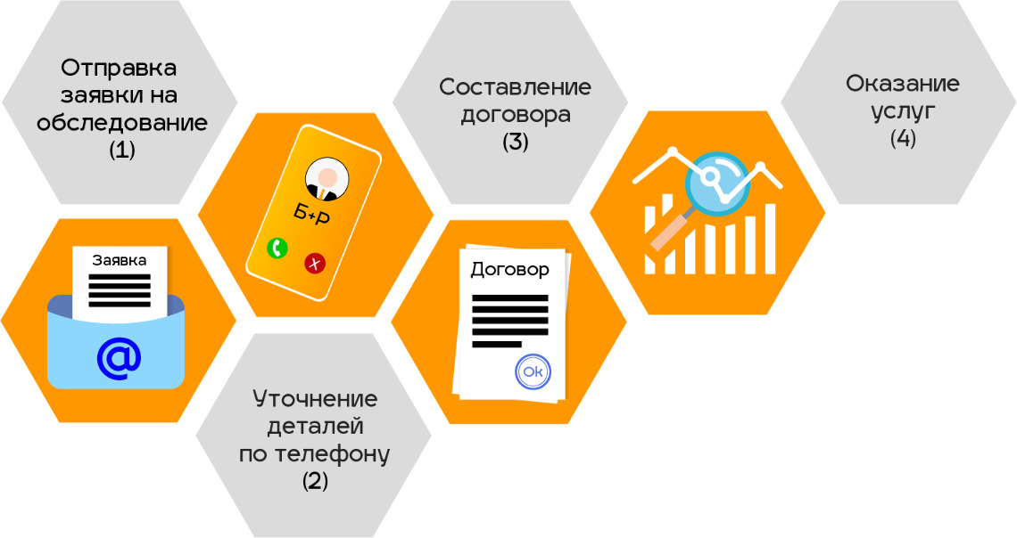 - Заключение договора на оказание услуги комплексного обследования предприятия