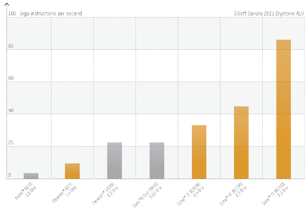 Intel уменьшил технологическую норму чипа до впечатляющих 22 нм. Новая микроархитектура с графическим блоком, интегрированным непосредственно в процессор, обеспечивает значительный скачок в производительности по сравнению с процессорами второго поколения серии Core i, не говоря уже о Core 2 Duo. Процессоры Core i3, Core i5 и Core i7, имеющие до четырех ядер, обеспечивают максимальную производительность, доступную в настоящее время на рынке промышленных ПК. При этом энергопотребление остается на минимально возможном уровне.