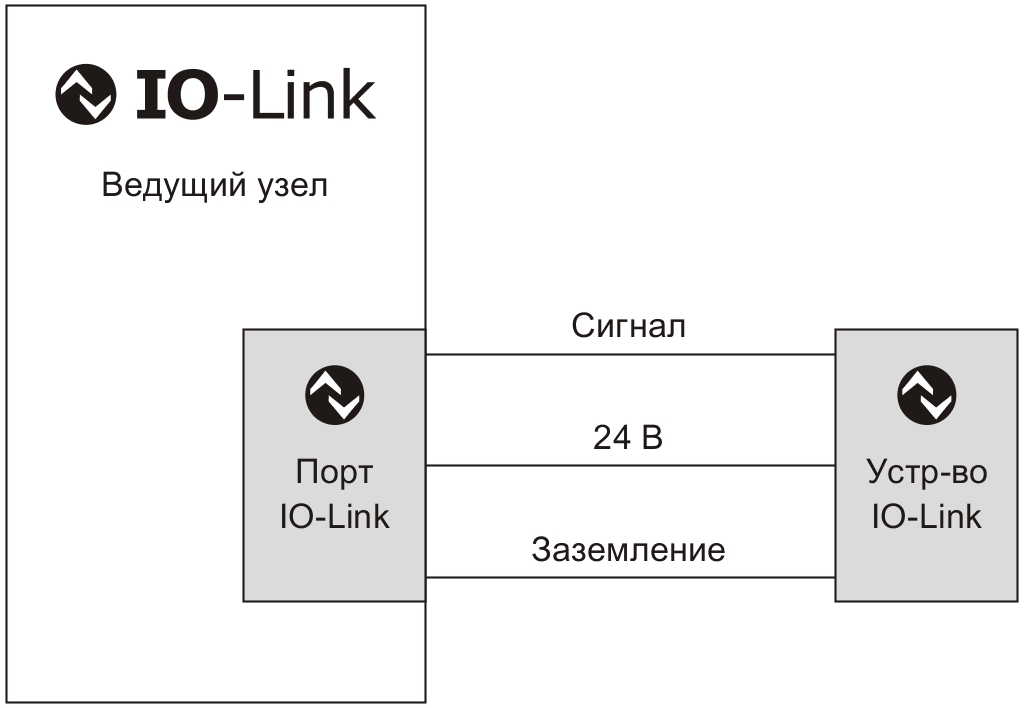 Система IO-Link состоит из ведущего узла IO-Link и одного или нескольких устройств IO-Link, т. е. датчиков и исполнительных устройств. Ведущий узел IO-Link обладает интерфейсом для связи с контроллером верхнего уровня и осуществляет связь с подключенными устройствами IO-Link.