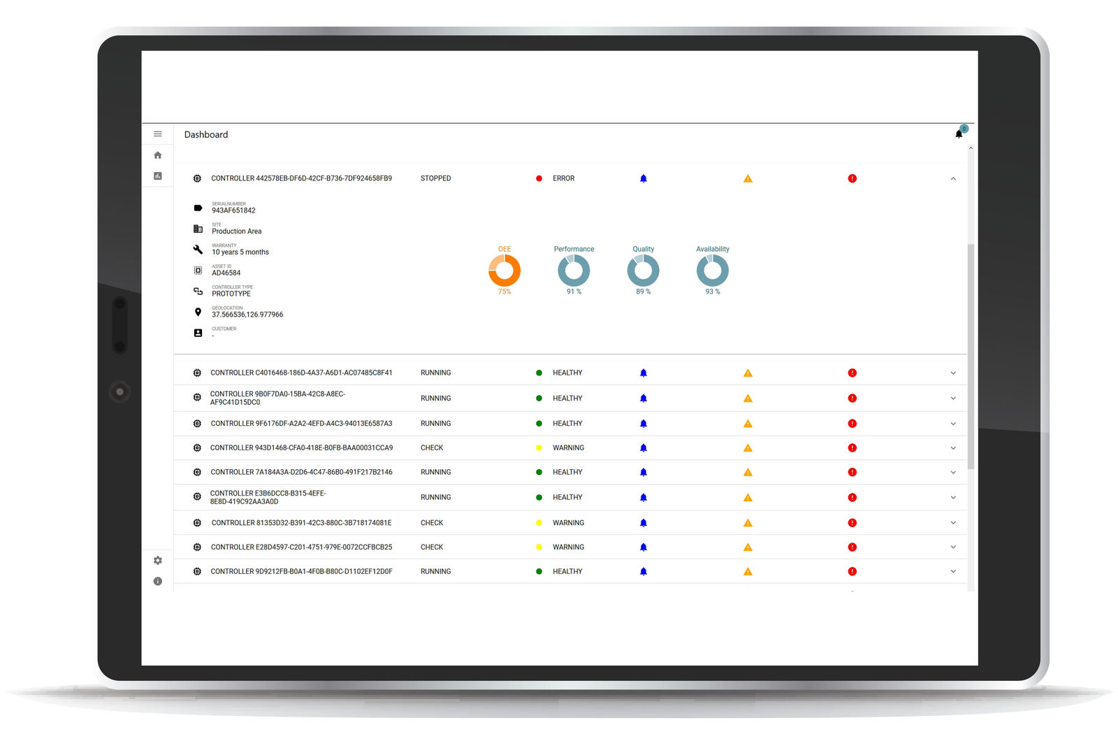 The cloud application collects machine data around the clock and displays it in a clearly organized dashboard.