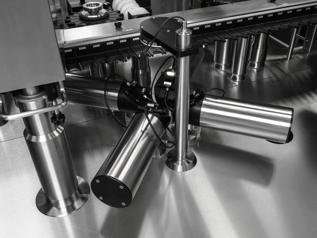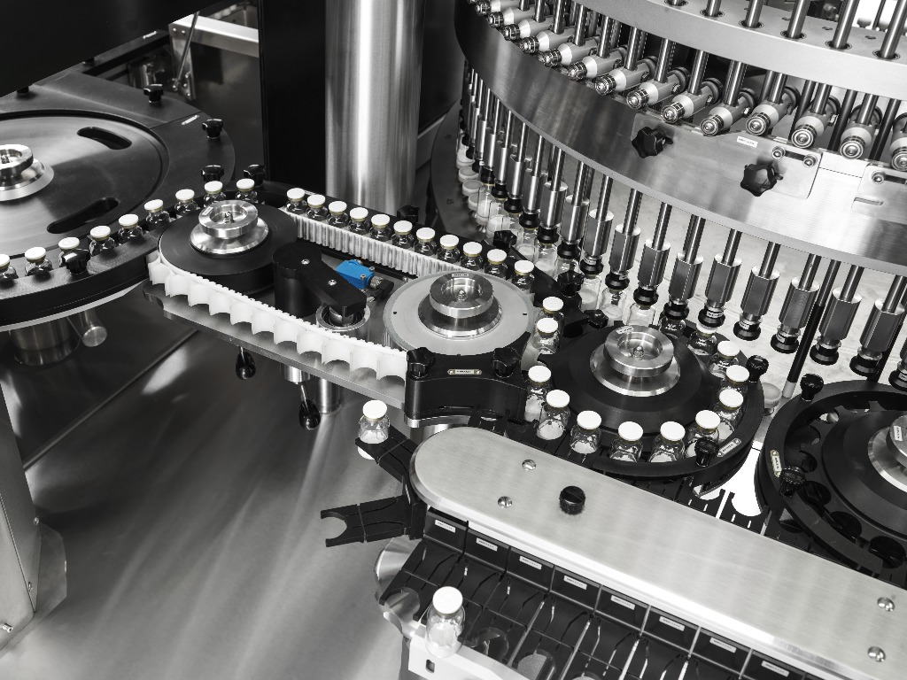 High precision at high speeds: An InnoScan inspection machine typically inspects 10 to 25 different attributes on filled vials – at speeds approaching 650 vials per minute.