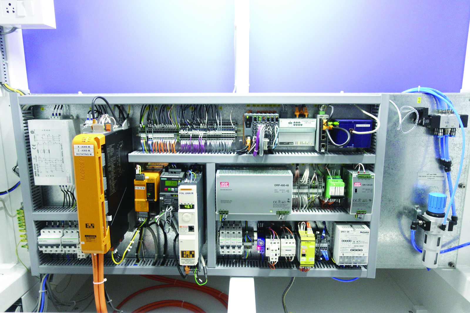 The use of ACOPOS P3 servo drives reduced the control cabinet footprint drastically – by around 69%. The POWERLINK network needs just a single Ethernet cable across the cabinet to the Panel PC 2100. This reduces cabling effort and improves maintenance. All the systems are tightly linked together with Automation Studio as the universal programming tool for all B&R hardware. The Panel PC 2100 runs B&R's Windows-based real-time operating system, ARwin, and provides the robustness and determinism needed for industrial applications.